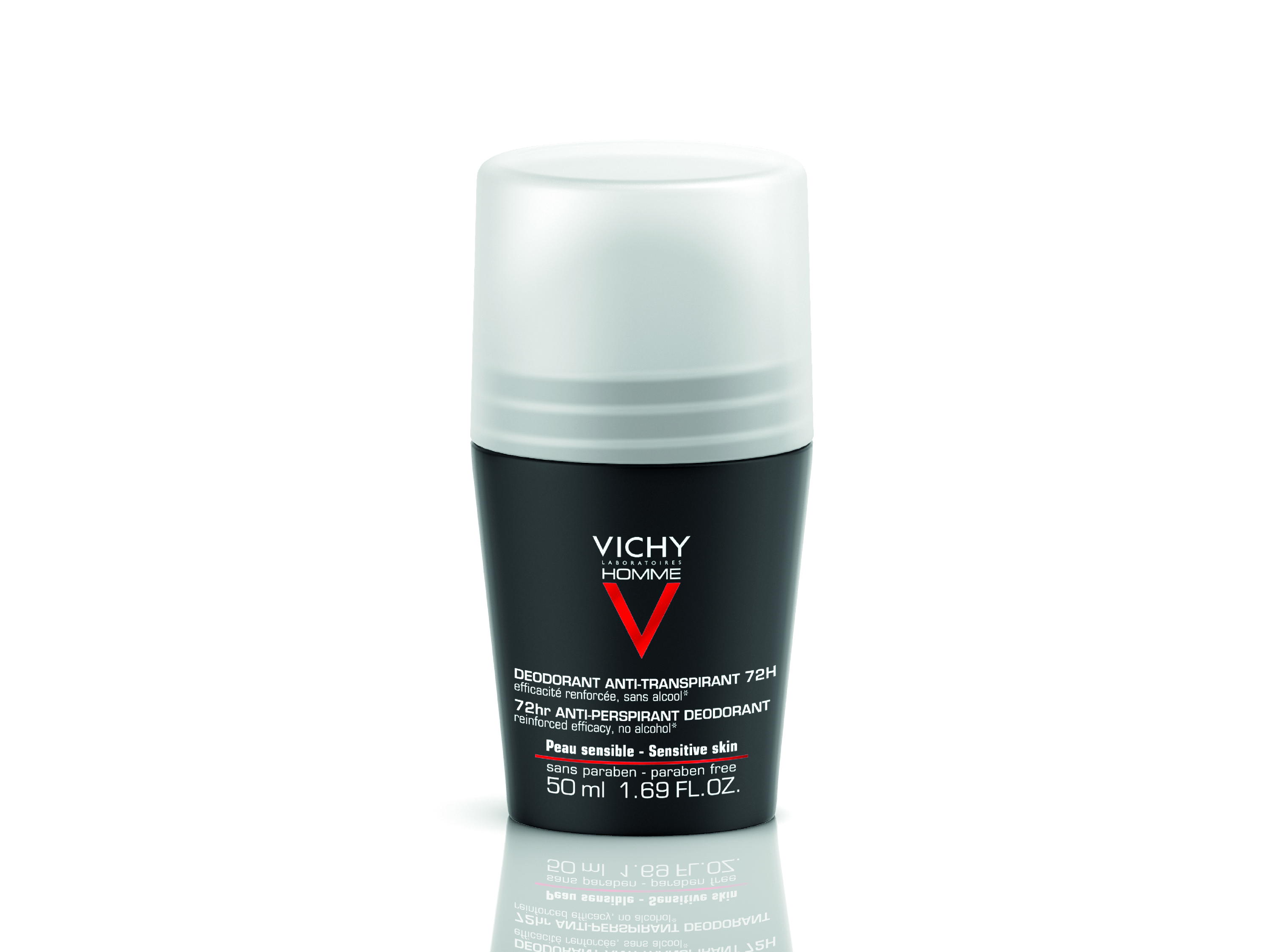 VICHY HOMME Deodorant Roll-On Anti-Transpirant 72H 50ml, für empfindliche Haut geeignet, wirkt 72 Stunden absorbiert die Feuchtigkeit und schützt vor Achselnässe. VICHY HOMME Deodorant Roll-On Anti-Transpirant 72H 50ml reguliert die natürliche Transpiration, ohne sie zu unterbinden und hinterlässt einen frischen Geruch.Anwendung
