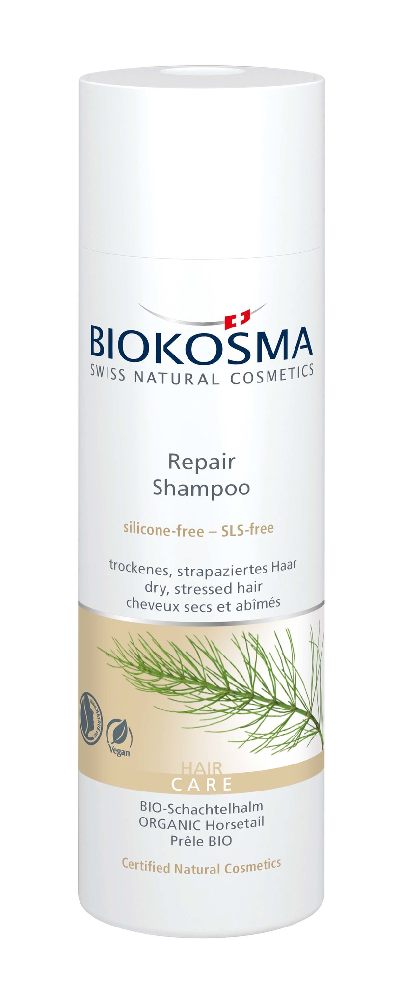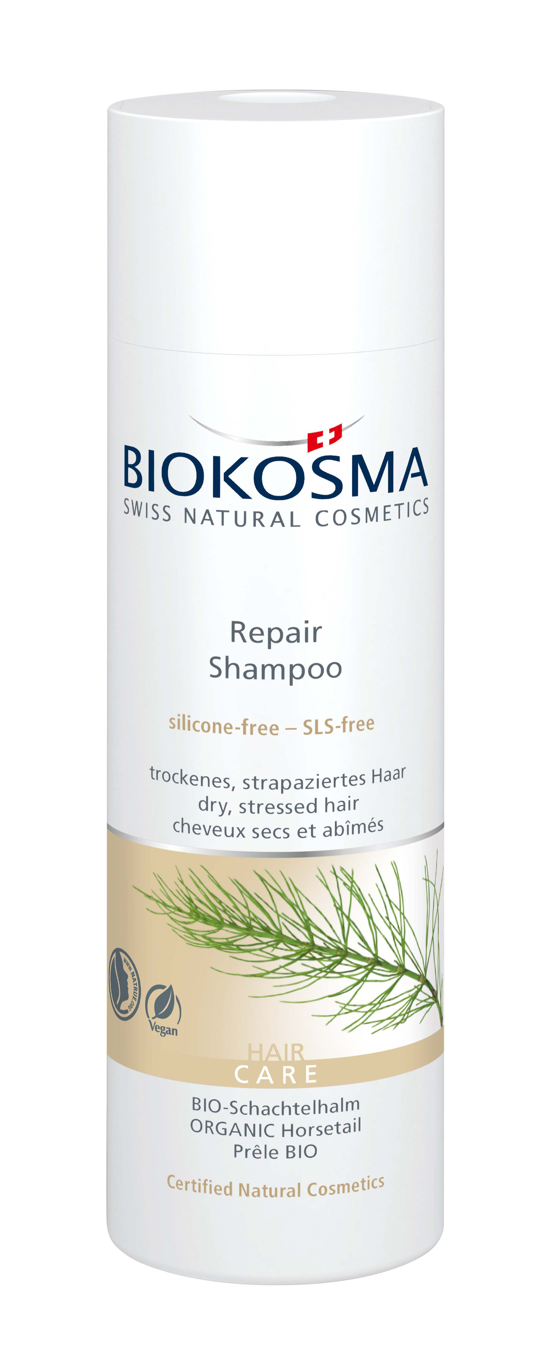 Repair Shampoo mit Bio-Schachtelhalm, das sich für trockenes, strapaziertes Haar eignet.