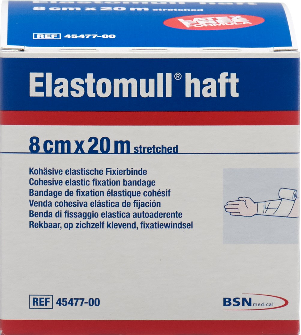 Elastomull Haft Gazebinde Weiss ist eine kohäsive, elastische Fixierbinde. Latexfrei.