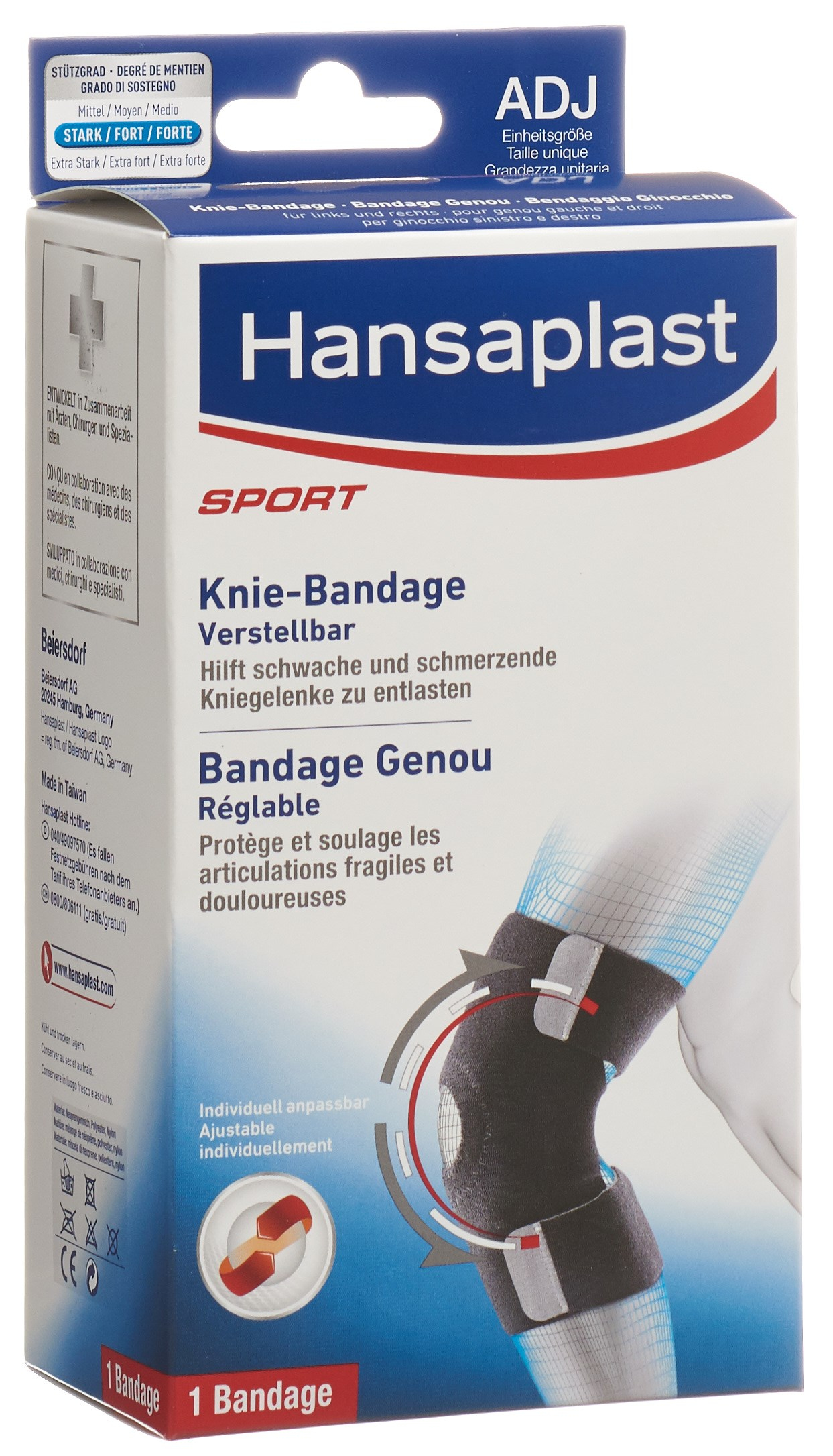 Die Hansaplast Kniegelenk-Bandage entlastet schwache, schmerzende oder verletzte Gelenke und gibt besseren Halt. Der individuell anpassbare Klettverschluss der Hansaplast Kniegelenk-Bandage aus beständigem Material sorgt für optimalen Halt, Wärme und Komfort. Die Bandage ist sowohl für das linke als auch für das rechte Knie verwendbar und einfach überzuziehen. - Hilft schwache oder schmerzende Kniegelenke zu entlasten - Für Alltag, Hobby und SportAnwendung
