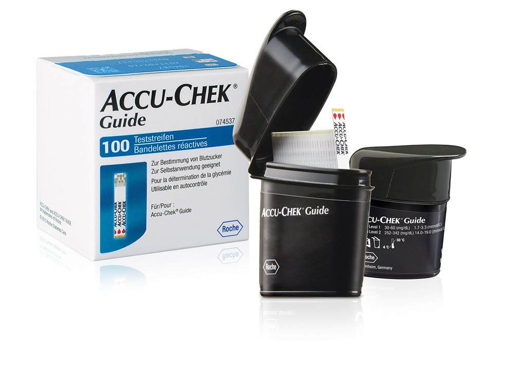 Accu-Chek Guide Teststreifen zur Bestimmung von Blutzucker. Zur Selbstanwendung geeignet. Für den Accu-Chek Guide.