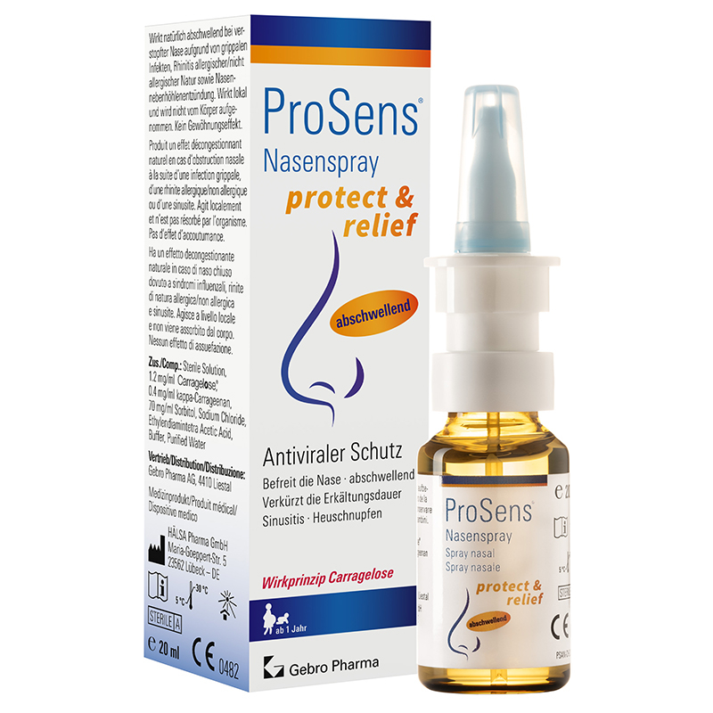 Der ProSens abschwellender Nasenspray wurde entwickelt zur Linderung der Symptome von Erkältungen, Sinusitis, Grippalen Infekten und allergisch und nicht allergisch bedingter Rhinitis. Der natürliche Wirkstoff Sorbitol (Zuckeralkohol) bewirkt ein physiologisches Abschwellen der Schleimhäute durch Osmose. Der ProSens abschwellender Nasenspray wirkt lokal und wird nicht resorbiert.